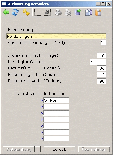 Alle Gruppen die nicht das Kennzeichen J im Feld Gesamtarchivierung haben müssen auf diese Weise archiviert werden.