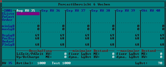 Die genaue Berechnung wird in der Maske "Forecastübersicht 6 Wochen" angezeigt. Drücken Sie Alt+F8 um die "Forecastübersicht 6 Wochen" zu öffnen.
