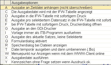 | C | Die Ausgabe erfolgt in eine IFW-Tabelle, sie wird auf dem Bildschirm geöffnet. |