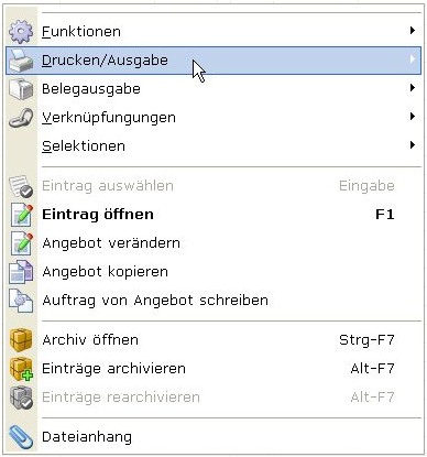 | W | Der Menüeintrag (das Ausgabeformular) wird im Druckmenü nur dann angezeigt, wenn der Benutzer über den ASP Client/Internet Client arbeitet. |