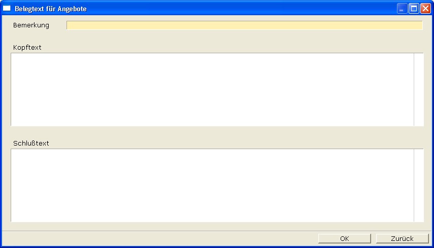 Schlußtext: Hier eingegebener Text erscheint auf jedem Belegausdruck unterhalb eines im Beleg selbst eingegebene Textes und oberhalb eines Werb- /Abschlußtext. Voraussetzung ist die Verwendung der Standardausdrucke (*01.dvl)