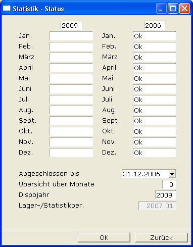 In dieser Maske protokolliert das IFW den Status der Monats- und Jahresabschlüsse. Lassen Sie die Maske unverändert. Lesen Sie den Abschnitt Abschlüsse im Kapitel Controling.