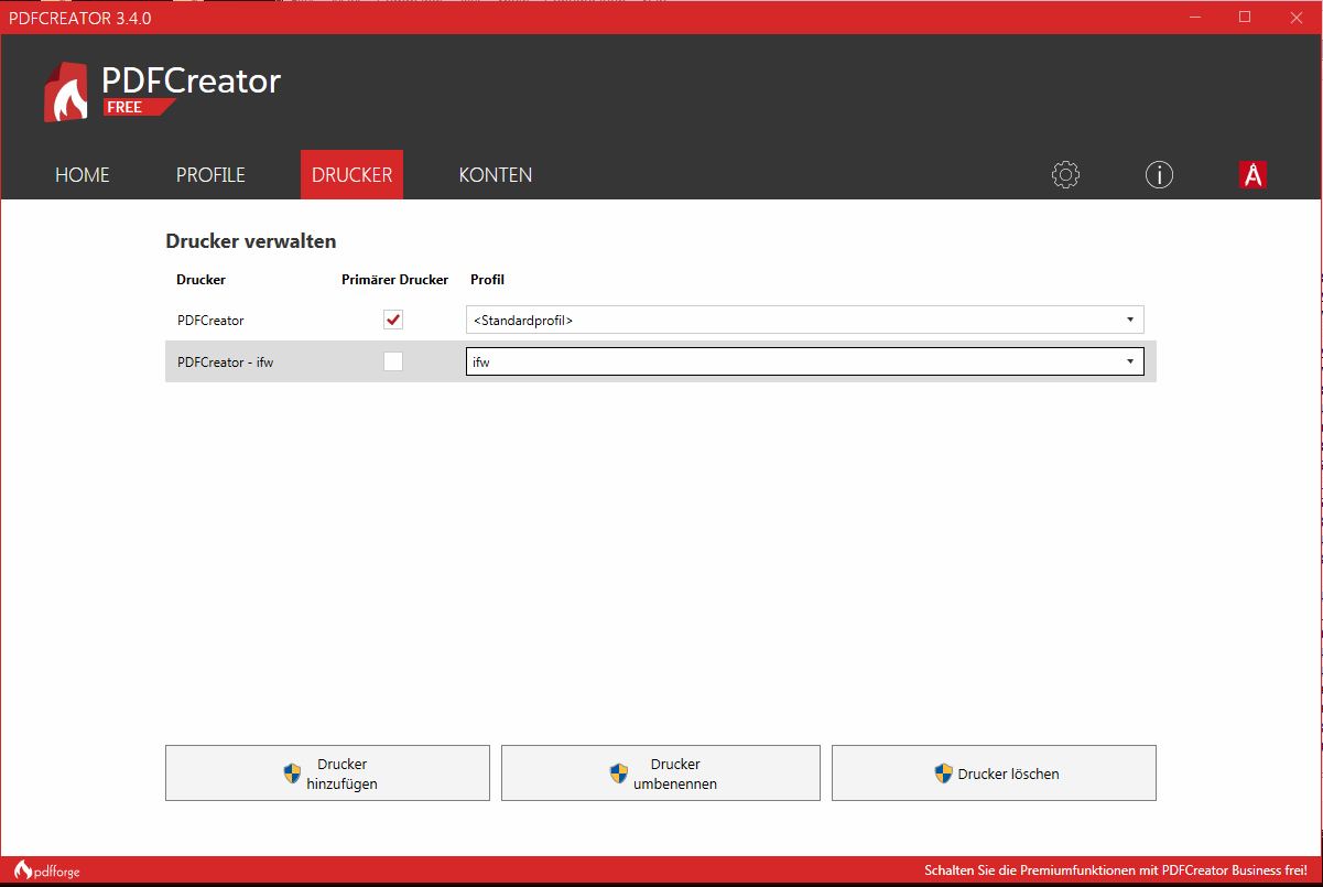 - Drucker neu anlegen mit dem Namen "PDFCreator - IFW"
