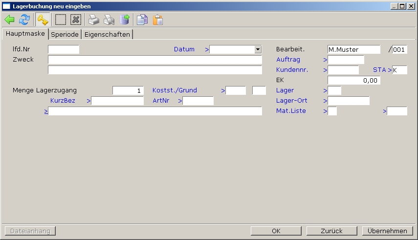 lfd.Nr: Die laufende Nummer der Lagerbuchung wird beim Speichern automatisch vergeben.