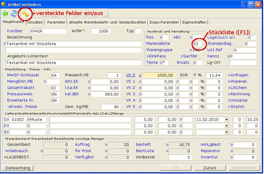 | Lieferantenartikelnr: | Die Nr. des Artikels beim Lieferanten |