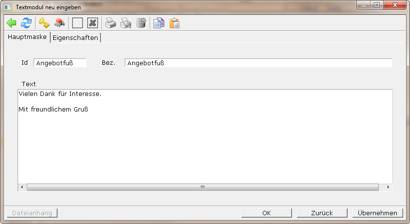 Schließen Sie mit der Taste Esc den Editor und speichern Sie den Textbaustein mit Eingabe ab.