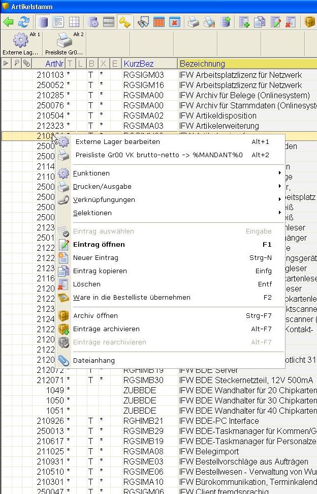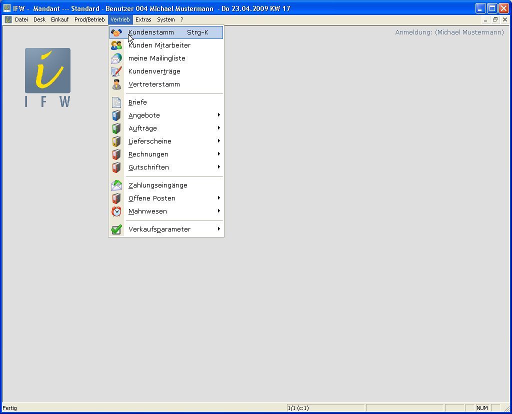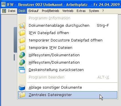 Abhängig von den installierten IFW Modulen erscheinen hier auch weitere Menüpunkte, wie z.B. Archiv oder Dateianhang.