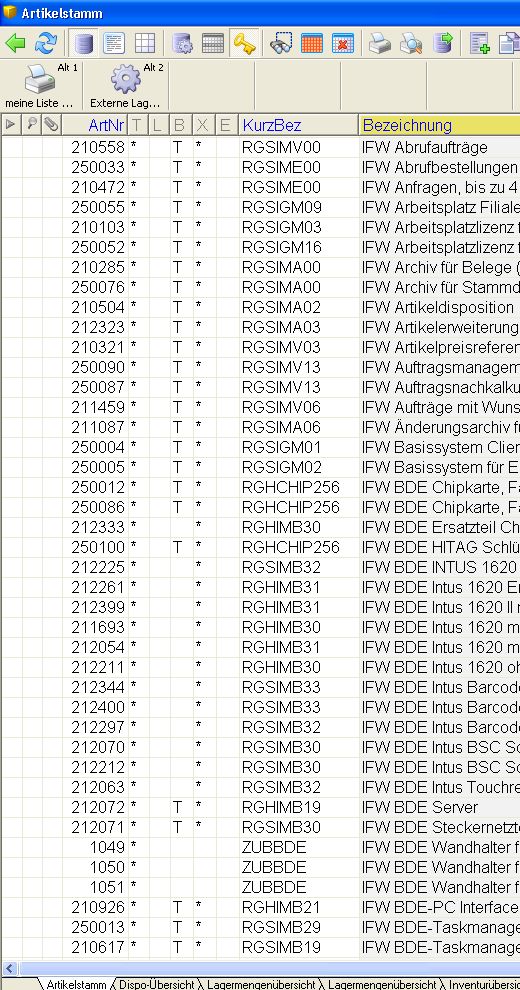 Sollte eine Spalte zu schmal dargestellt werden drücken Sie [F5]. Das IFW optimiert dann die Spaltenbreite.