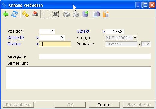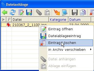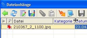 An diesem Symbol erkennen Sie ob ein Datensatz Dateianhänge hat. Doppelklicken Sie das Symbol um den Dateianhang zu öffnen