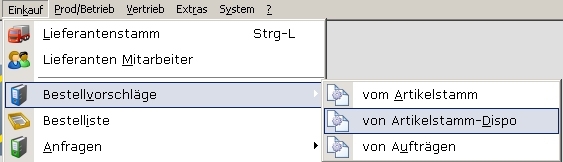 Bestellvorschlag von Artikelstamm-Dispo