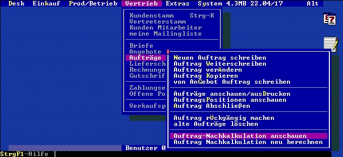 Menü "Auftrag-Nachkalkulation"