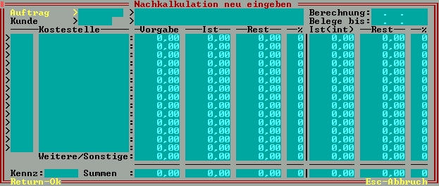 Nachkalkulationsmaske