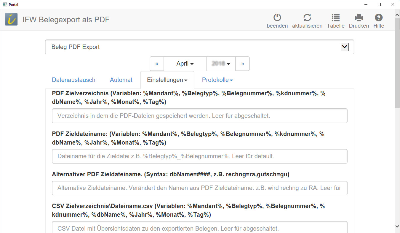 Öffnen Sie wie oben beschrieben das Portal "IFW Belegexport als PDF".