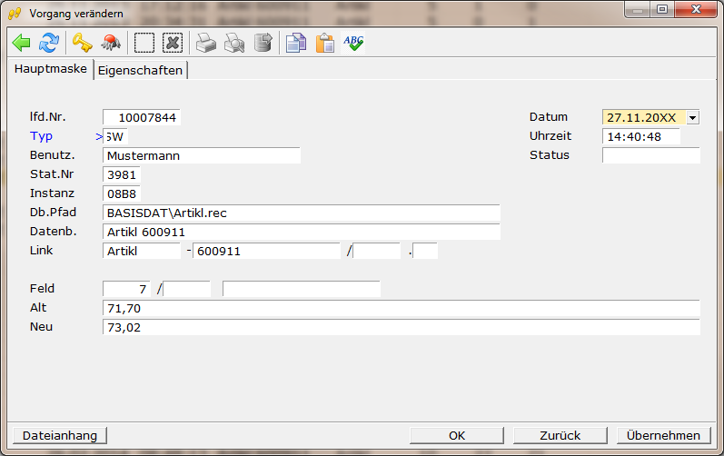 Das IFW Modul erweitert die Logbuchfunktionen auf Änderungen an Datensätzen. Es können die Änderungen aller oder einer Auswahl von Feldern einer Datenbank protokolliert werden. Ausnahme sind Fließtextfelder. Änderungen an Fließtextfeldern (Artikeltexte, Briefe, Kundenmemos) werden nicht protokolliert.