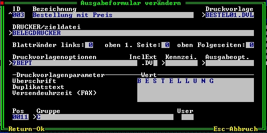 Die fremdsprachigen Ausdrucke funktionieren ausschließlich bei Verwendung der Standarddruckvorlagen, der Belege "xxxxxx01.dvl" (z.B. bestel01.dvl) mit schaltbarer Ausgabe.