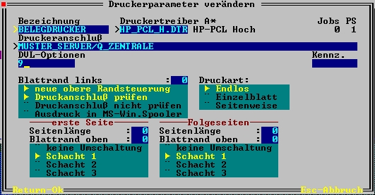 Alternativ dazu kann auch in der Druckerliste zentral der Parameter "9" gesetzt werden. Diese Einstellung gilt dann für alle Ausdrucke, die über diesen Drucker geführt werden.