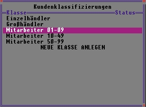 - Anlage beliebig vieler Kundenklassen, z.B. Anzahl Mitarbeiter, Einzel- oder Großhändler.