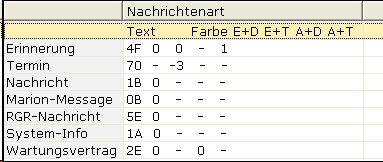 Im System sind bereits einige Nachrichtenarten voreingestellt, die auf dem Feld Art> in der Nachrichtenmaske ausgewählt werden können. Die verschiedenen Nachrichtenarten enthalten vordefinierte Parameter für Aussehen und terminliche Vorgaben.