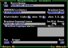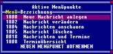 - Far: Bestimmt die Farben der Nachrichtenanzeige. Nach der Auswahl der Nachrichtenart erscheint hier automatisch der für die Nachrichtenart definierte Wert. Mit F1 kann aus einer Liste ausgewählt werden, in welcher Farbe Hintergrund (erste Farbe) und Schrift (zweite Farbe) der Nachricht angezeigt werden soll.