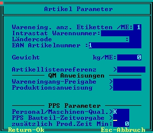 Parametermaske im Artikelstamm