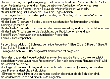 >geplante Produktionen: Hier können Sie mit der Taste F1 eine Liste der Produktionen anzeigen lassen, die auf diese Fertigungsstelle eingelastet sind.