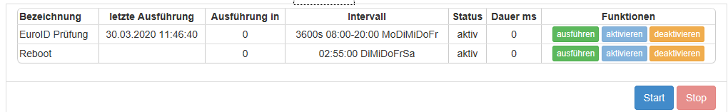 Hier finden Sie die Angaben zur zyklischen Prüfung der EuroIds. Klicken Sie auf <keyb>ausführen</keyb> um den Vorgang sofort zu starten.