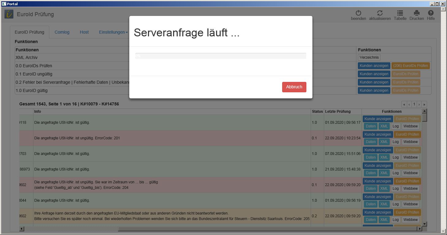 Ist der Button EuroIDs Prüfen aktiv können Sie damit die Prüfung aller anstehender EuroIds auslösen.
